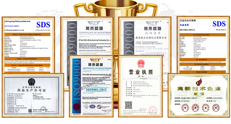 జియాన్ డెలి బయోకెమికల్ ఇండస్ట్రీ కో., లిమిటెడ్ అనేది ఒక హైటెక్ ఎంటర్ప్రైజ్. సైక్లోడెక్స్ట్రిన్స్ మరియు వాటి ఉత్పన్నాల యొక్క R&D, ఉత్పత్తి మరియు విక్రయాలు. మేము ప్రపంచవ్యాప్తంగా ఉన్న కస్టమర్లకు స్థిరమైన నాణ్యత మరియు విశ్వసనీయమైన సేవతో ఫార్మాస్యూటికల్ ఎక్సిపియెంట్లను సరఫరా చేస్తాము.